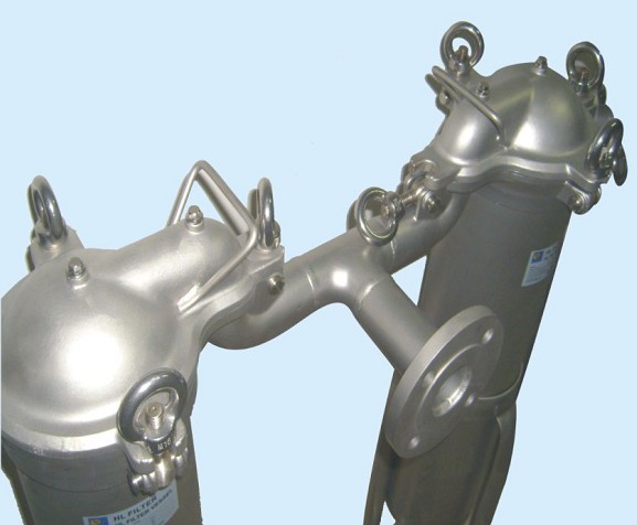 袋式過濾器工作原理及結(jié)構(gòu)特點 本設備全部采用不銹鋼SUS304/316L制造,內(nèi)外表面拋光處理,濾筒內(nèi)裝有不銹鋼濾網(wǎng)和濾網(wǎng)支撐籃;頂部裝有放氣閥,供過濾時排放濾器內(nèi)空氣作用。上蓋與濾筒連接采用快開式結(jié)構(gòu),更方便清洗(更換)濾網(wǎng),三只可調(diào)節(jié)式支腳可使濾器平穩(wěn)放置在地面上。連接管路采用活接或卡箍連接方式,進出料閥門采用三通球閥啟閉,耐壓耐溫,操作靈活方便,無料液泄漏更衛(wèi)生。管道接頭采用脹合連接,經(jīng)0.3Mpa水壓試驗,三通外螺紋旋塞啟閉靈活,該設備結(jié)構(gòu)緊湊,操作方便,維修簡單。 此外:可將兩個單筒過濾器組裝在一個機座上,清洗過濾器時不必停車,保證其連續(xù)工作,是不停車生產(chǎn)線過濾裝置首選。 袋式過濾器適用范圍 1、化工,石油化工生產(chǎn)中的弱腐蝕性物料,如:水、氨、油品、烴類等。 2、化工生產(chǎn)中的腐蝕性物料,如:燒堿、濃稀硫酸、碳酸、醋酸等。 3、制冷中的低溫物料,如:液甲烷、液氨、液氧和各種冷劑。 4、輕工食品,制藥生產(chǎn)中有衛(wèi)生要求的物料,如:啤酒、飲料、乳制品、糧漿醫(yī)藥用品等。 袋式過濾器安裝使用 安裝使用時,應注意對控制箱、傳感器及傳動部分的保護,防止損壞 按照不銹鋼自清洗過濾器本體上的箭頭提示方向連接管道 調(diào)式電動部分時,請注意電機的轉(zhuǎn)動方向要與標識方向一致 安裝時應考慮便于檢修,且應安裝旁通管道。 安裝時應盡量考慮排污口在下部,便于雜物的排放。 排污管接到排污溝,排污管道不宜過長。 技術(shù)參數(shù):