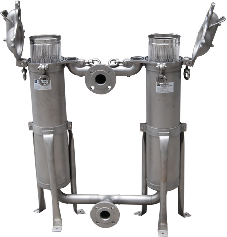 結(jié)構(gòu)原理: 本設(shè)備全部采用不銹鋼SUS304/316L制造,內(nèi)外表面拋光處理,濾筒內(nèi)裝有不銹鋼濾網(wǎng)和濾網(wǎng)支撐籃;頂部裝有放氣閥,供過濾時排放濾器內(nèi)空氣作用。上蓋與濾筒連接采用快開式結(jié)構(gòu),更方便清洗(更換)濾網(wǎng),三只可調(diào)節(jié)式支腳可使濾器平穩(wěn)放置在地面上。連接管路采用活接或卡箍連接方式,進出料閥門采用三通球閥啟閉,耐壓耐溫,操作靈活方便,無料液泄漏更衛(wèi)生。管道接頭采用脹合連接,經(jīng)0.3Mpa水壓試驗,三通外螺紋旋塞啟閉靈活,該設(shè)備結(jié)構(gòu)緊湊,操作方便,維修簡單。 此外:可將兩個單筒過濾器組裝在一個機座上,清洗過濾器時不必停車,保證其連續(xù)工作,是不停車生產(chǎn)線過濾裝置首選。 技術(shù)參數(shù):