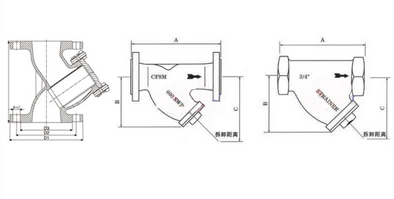 2、Y型拉桿伸縮過(guò)濾器由Y型過(guò)濾器及伸縮接頭組成,通常安裝在閥門及其它主要設(shè)備之進(jìn)口端,使于清理雜物與安裝拆卸,以保護(hù)閥類或設(shè)備及正常使用。