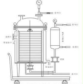濾芯式過濾器結(jié)構(gòu):SHK型過濾機(jī)由筒體、過濾液板、視鏡、雙向壓緊裝置、循環(huán)管路系統(tǒng)。開啟進(jìn)料閥,過濾開始,濾液即被輸送到指定的貯罐內(nèi)。 濾芯式過濾器工作原理:料漿經(jīng)泵輸送進(jìn)濾器內(nèi),上部排空閥顯示料漿充滿濾器后,停止進(jìn)料。打開循環(huán)管路系統(tǒng),使料漿在濾器本體進(jìn)行循環(huán)過濾,監(jiān)視視鏡,當(dāng)肉眼觀察符合質(zhì)量要求時(shí),關(guān)閉循環(huán)管路系統(tǒng),開啟進(jìn)行閥,過濾開始,濾液即被輸送到指定的貯罐內(nèi)。不銹鋼粉末活性碳過濾機(jī)分為兩種:1型、2型。1型為加熱保溫過濾。2型為普通。 濾芯式過濾器產(chǎn)品特點(diǎn):雙向壓緊結(jié)構(gòu),杜絕了泄漏現(xiàn)象。生產(chǎn)效率高,濾液澄清度高。獨(dú)特的循環(huán)系統(tǒng),縮補(bǔ)了過濾周期。滿足制藥行業(yè)GMP規(guī)范的要求。勞動(dòng)強(qiáng)度低,占地面積小。可使用濾布、濾紙、濾膜、燒結(jié)金屬氈等作為過濾介質(zhì)。 濾芯式過濾器技術(shù)參數(shù):