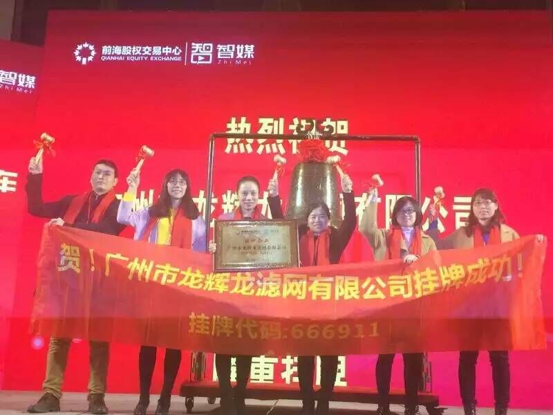 上周五(1月22日)廣州市輝龍濾網(wǎng)有限公司掛牌成功,全體員工舉行了掛牌儀式,掛牌代碼:666911。儀式上,優(yōu)秀的領(lǐng)導(dǎo)、員工在臺(tái)上手執(zhí)小錘,進(jìn)行了敲鐘儀式,整個(gè)儀式氣氛十分的活躍,員工也為公司掛牌成功十分高興、激動(dòng)。這對(duì)于將來(lái)輝龍公司的長(zhǎng)遠(yuǎn)發(fā)展都是十分有益的。 |