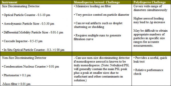 表1中。概述之間的權(quán)衡氣溶膠的產(chǎn)生和過濾器測(cè)試儀表選型。